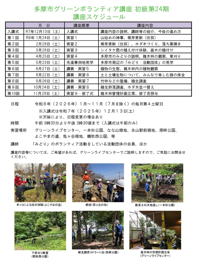 【追加募集】多摩市グリーンボランティア講座〔初級第24期〕